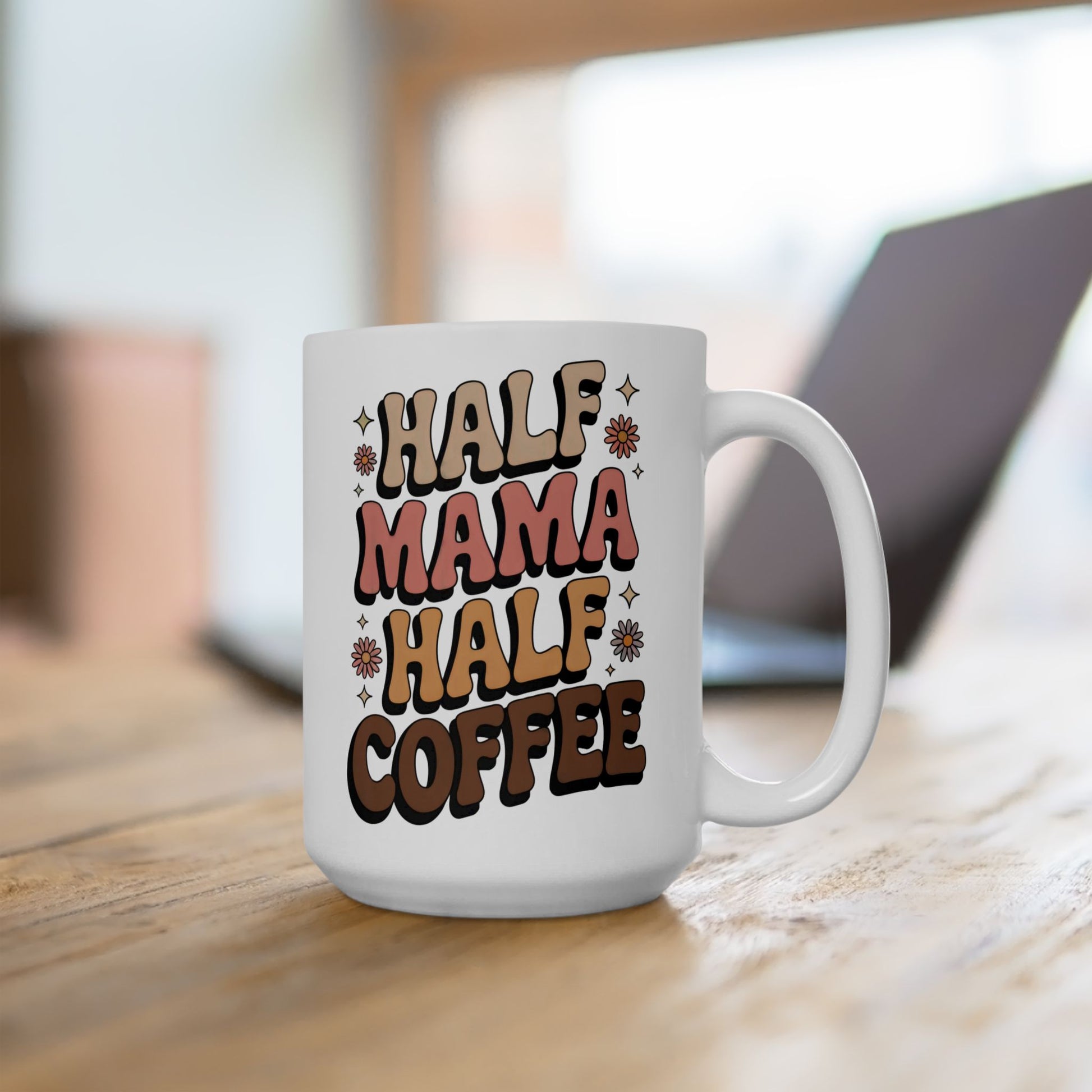 Coffee Mug - Half Mama Half Coffee Vintage Vibes & Mom Energy 11oz 15oz