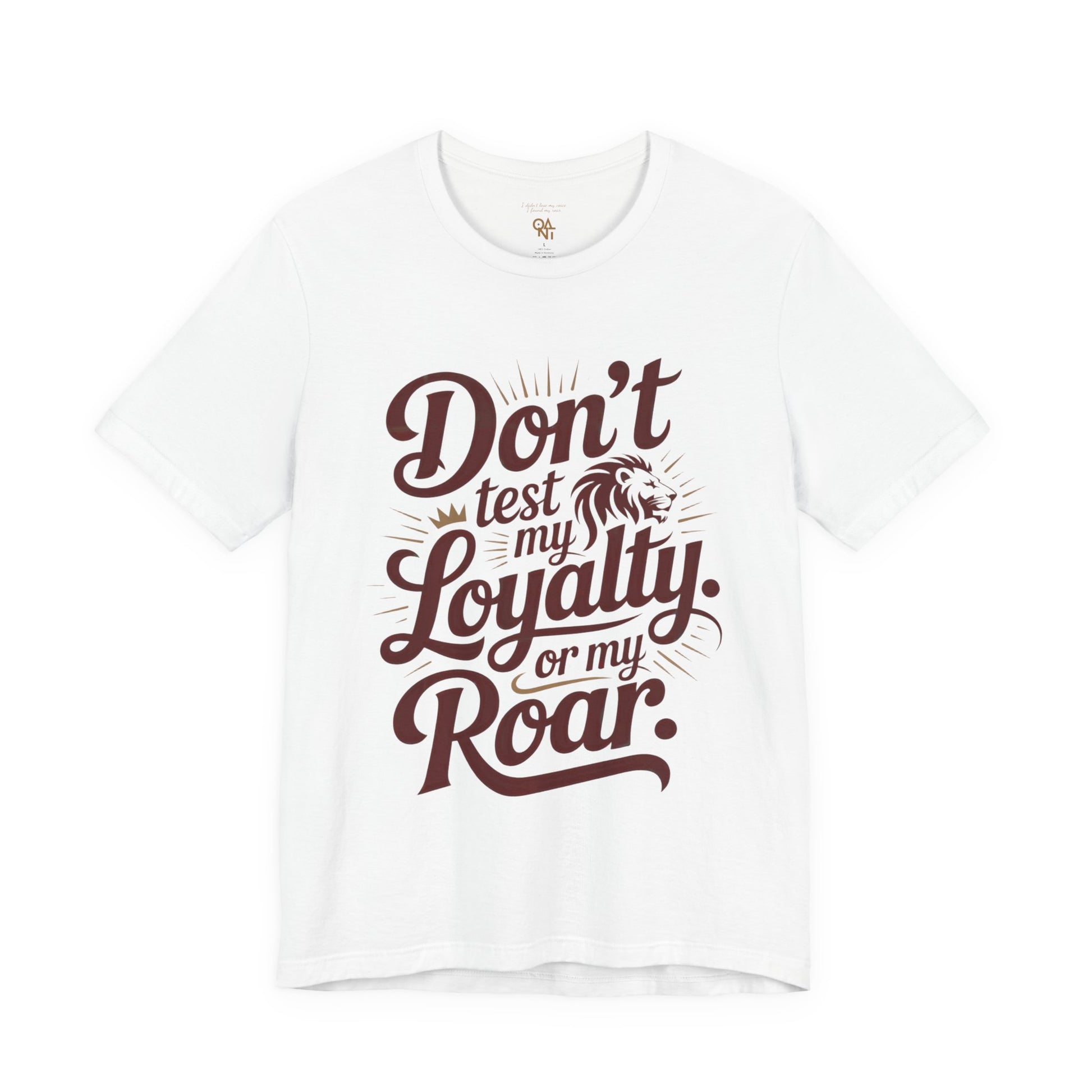 This “Don’t Test My Loyalty. Or My Roar.” unisex t-shirt delivers bold Leo energy with its regal typography, flowing lion silhouette, and radiant sun flares—anchored by a golden crown over the word Loyalty. It’s a visual roar for those who defend their peace with power.