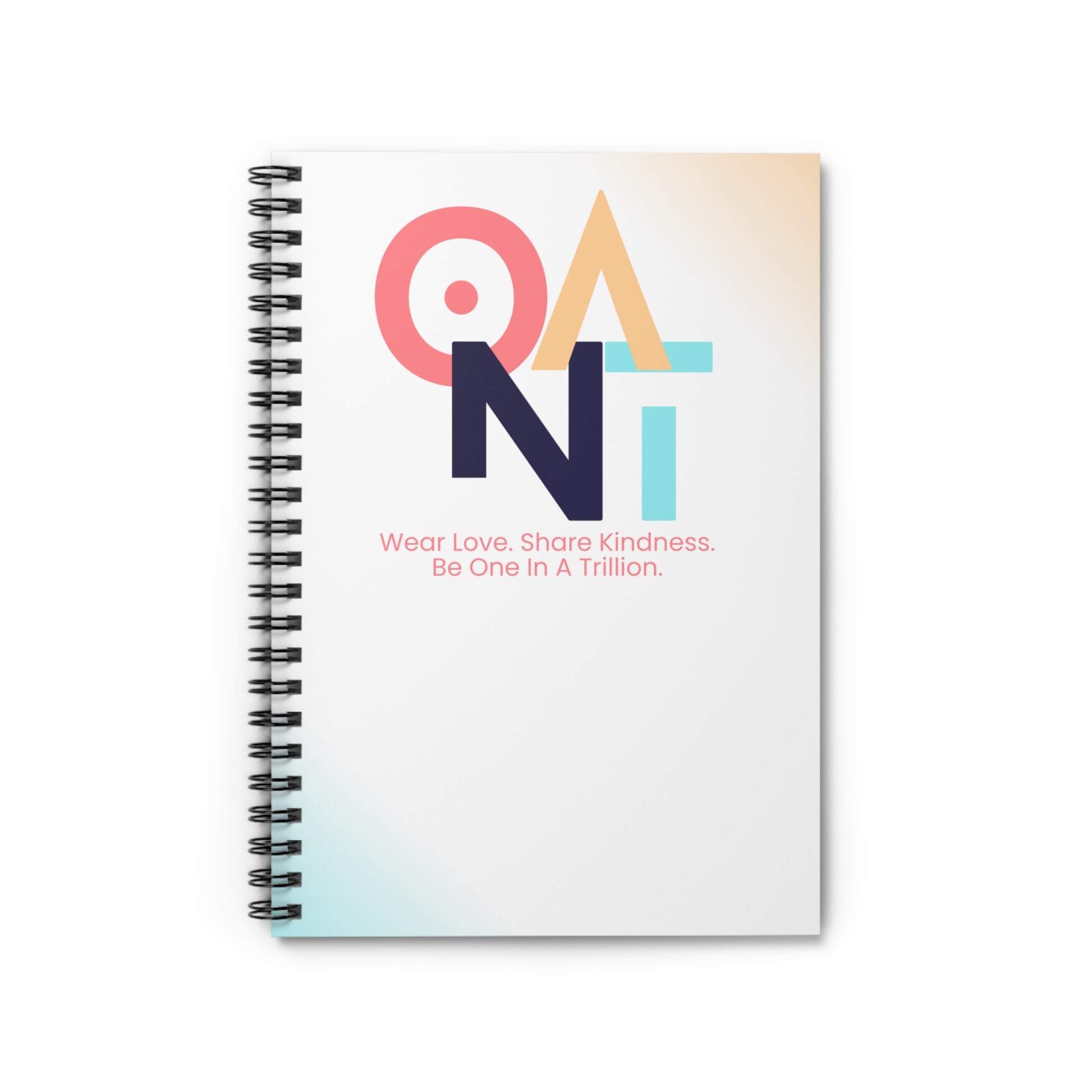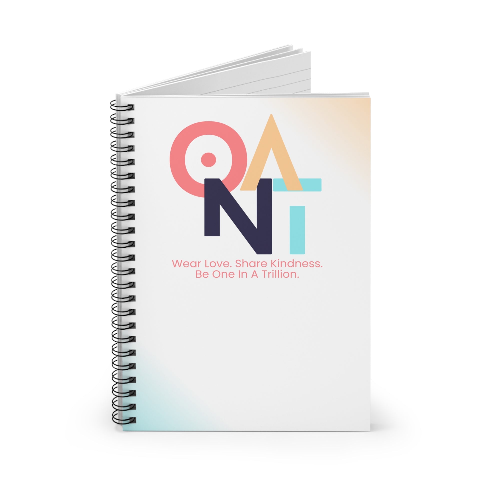 Inspiring Spiral Notebook - "Wear Love. Share Kindness. Be One In A Kind." 6" x 8" (15.2 x 20.3 cm) 118 ruled line pages (59 sheets)