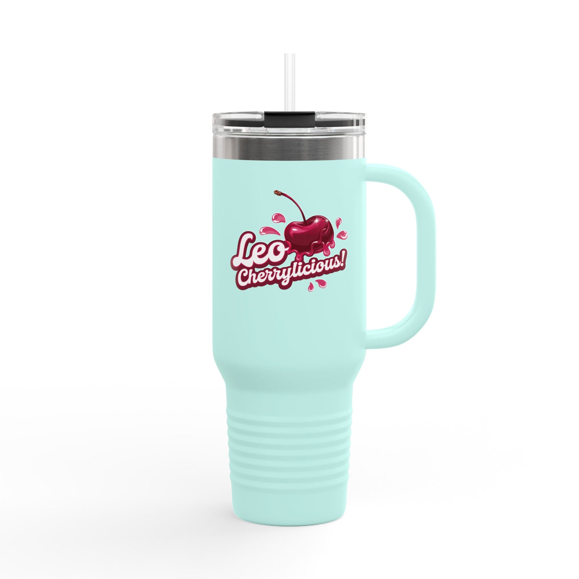 This design features a plump, glossy cherry with a dripping effect that practically oozes Leo magnetism. Surrounding juice splashes add motion and fun, while the funky retro font wraps the phrase "Leo Cherrylicious!" in vibrant red and pink. Whether it’s on your chest, in your hand, or over your shoulder—this design says: “I’m sweet... but I bite back.”