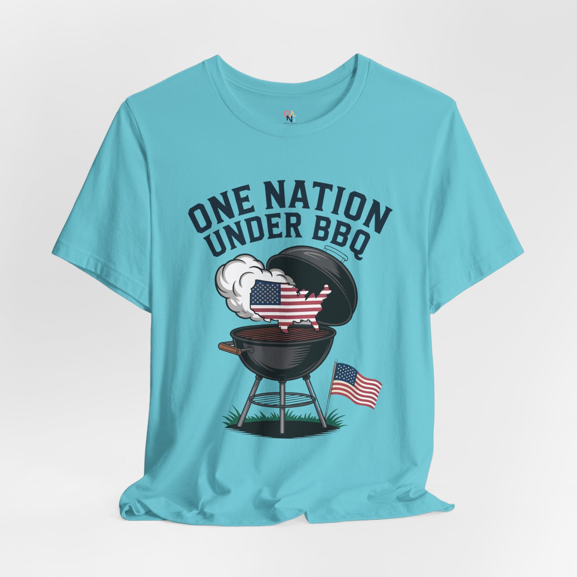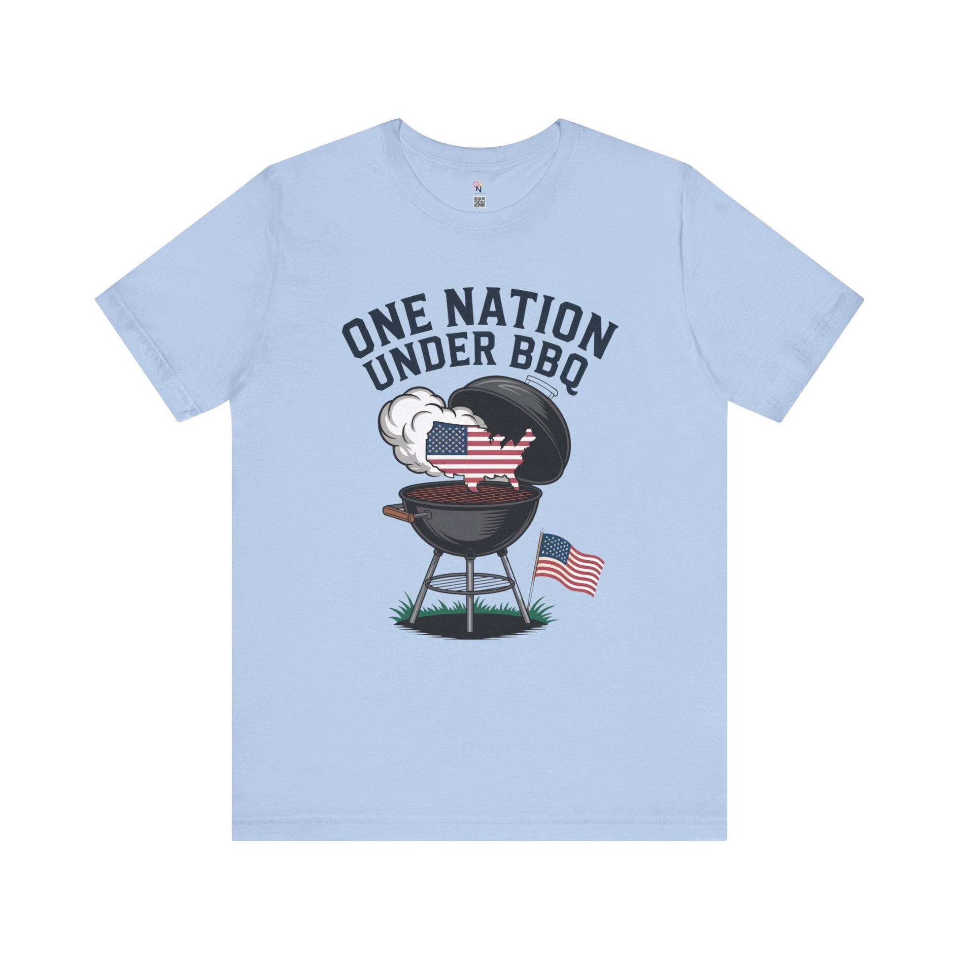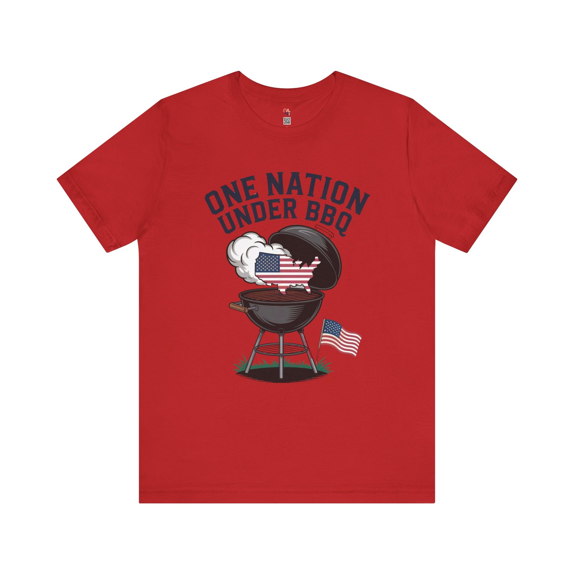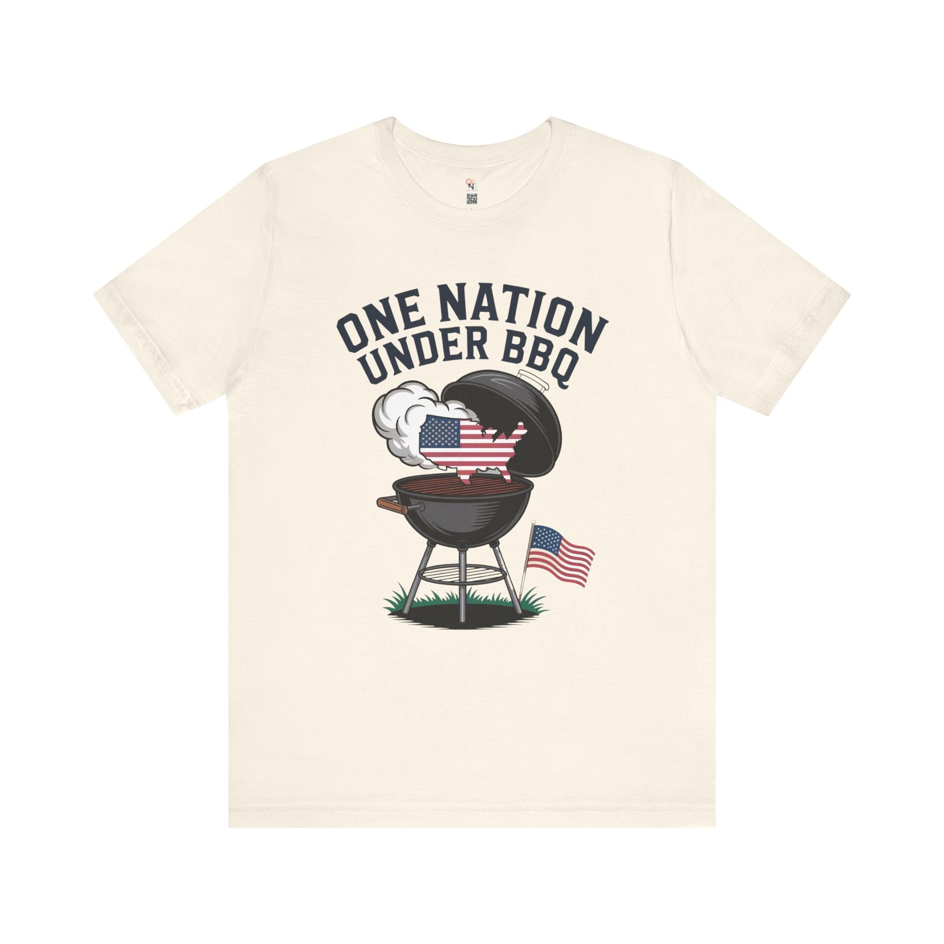 Feel patriotic and ready for summer with our 'One Nation Under BBQ' unisex t-shirt. Perfect for 4th of July, cookouts, and family reunions, this bold and funny tee is made for grill masters, BBQ lovers, and backyard heroes. Serve freedom with a side of flavor with this patriotic cookout shirt. Ideal for anyone looking to add a touch of patriotism to their summer wardrobe or celebrations.
