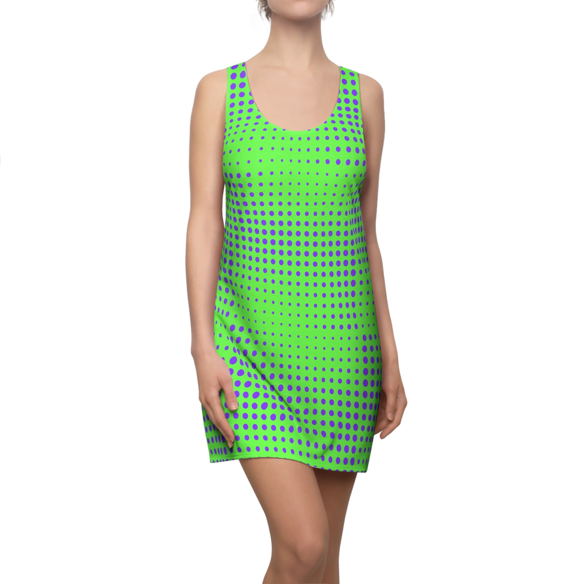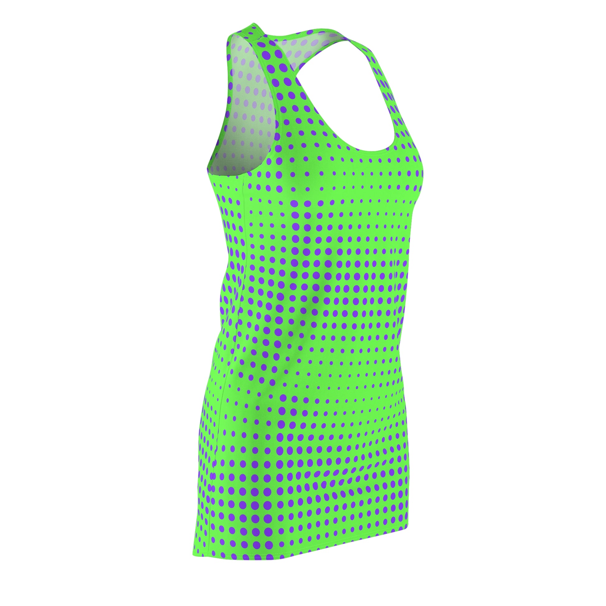 Racerback Dress - Lime Green & Vivid Purple Polka Dots Design