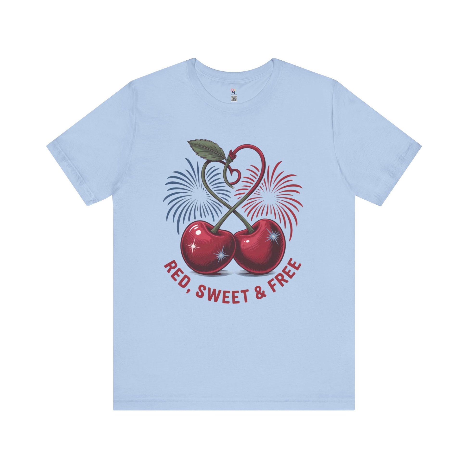 Red, Sweet & Free – Patriotic Cherry Heart 4th of July Unisex T-Shirt