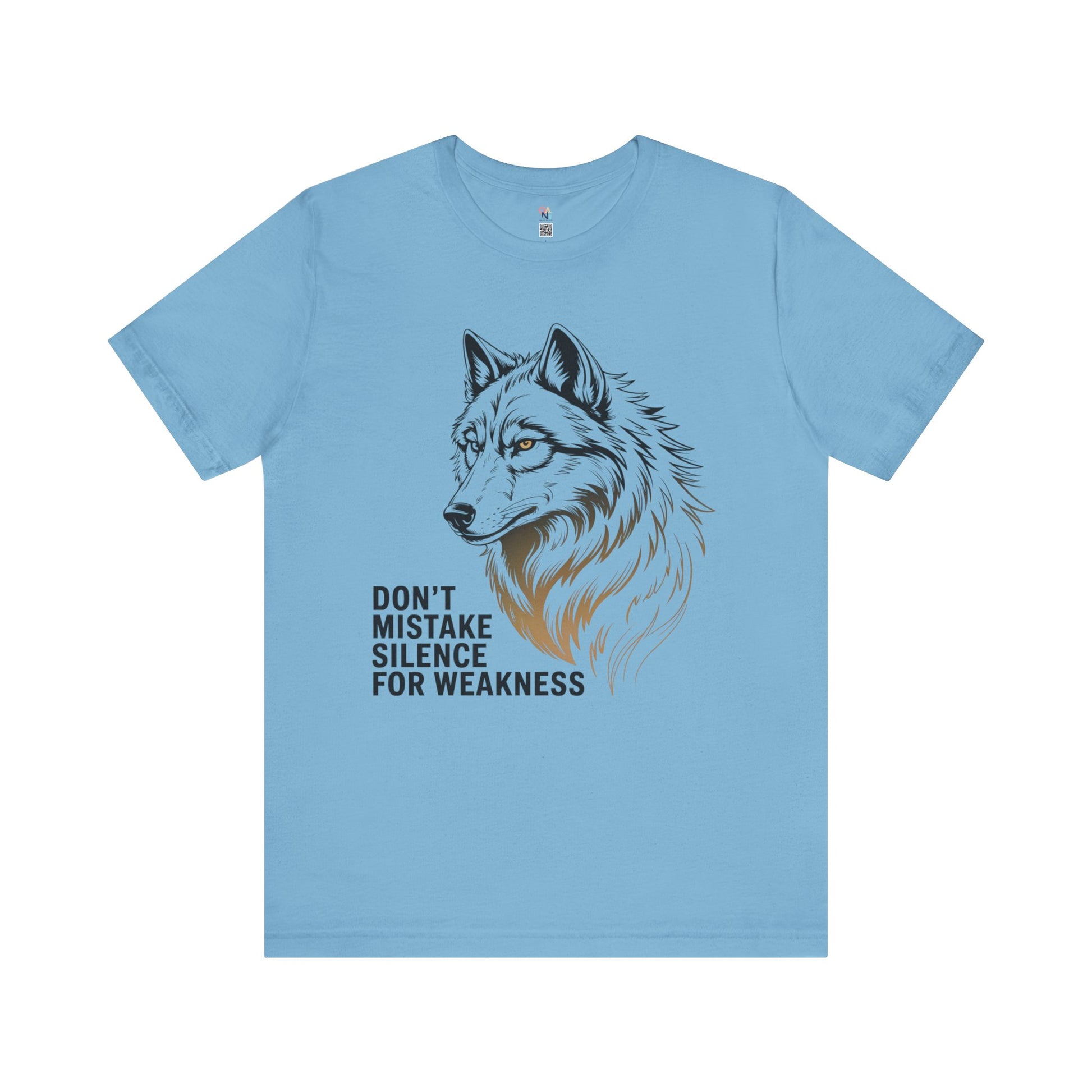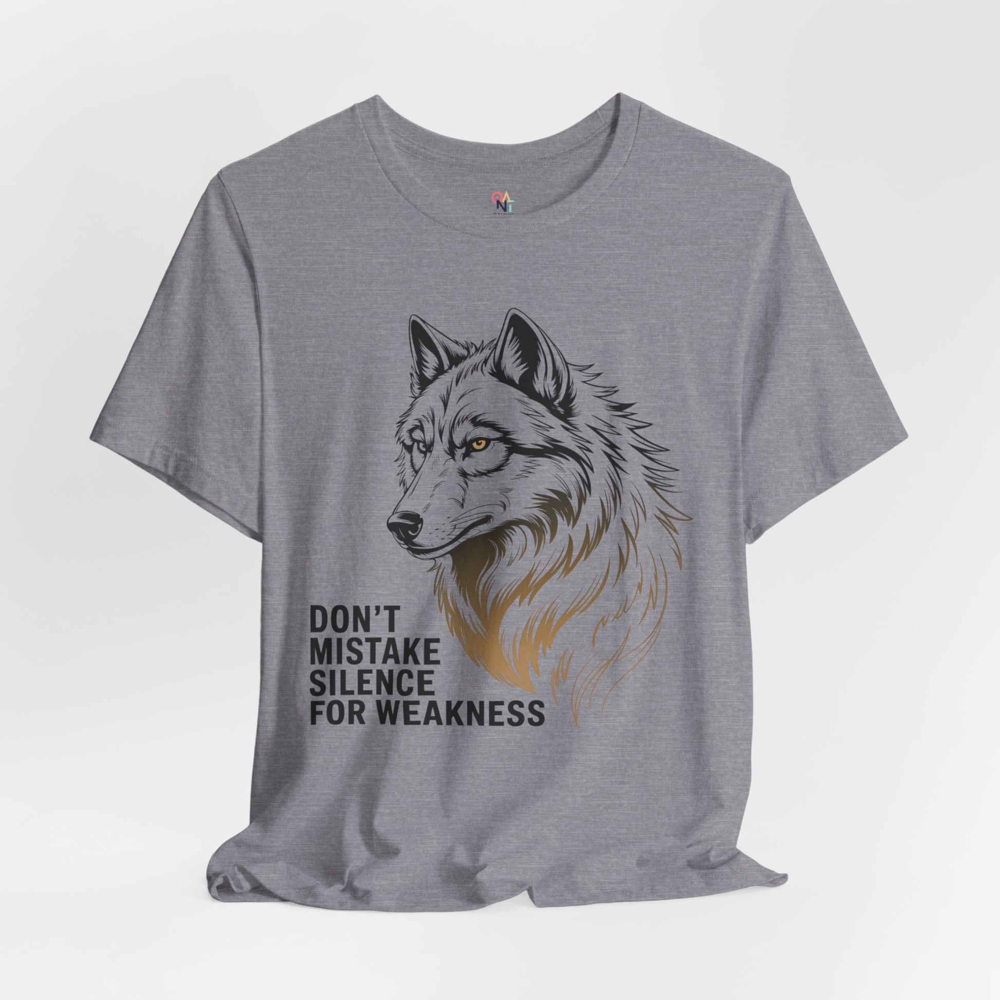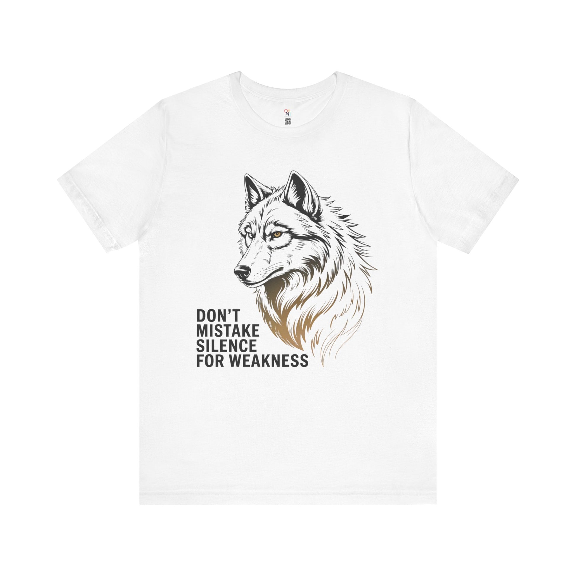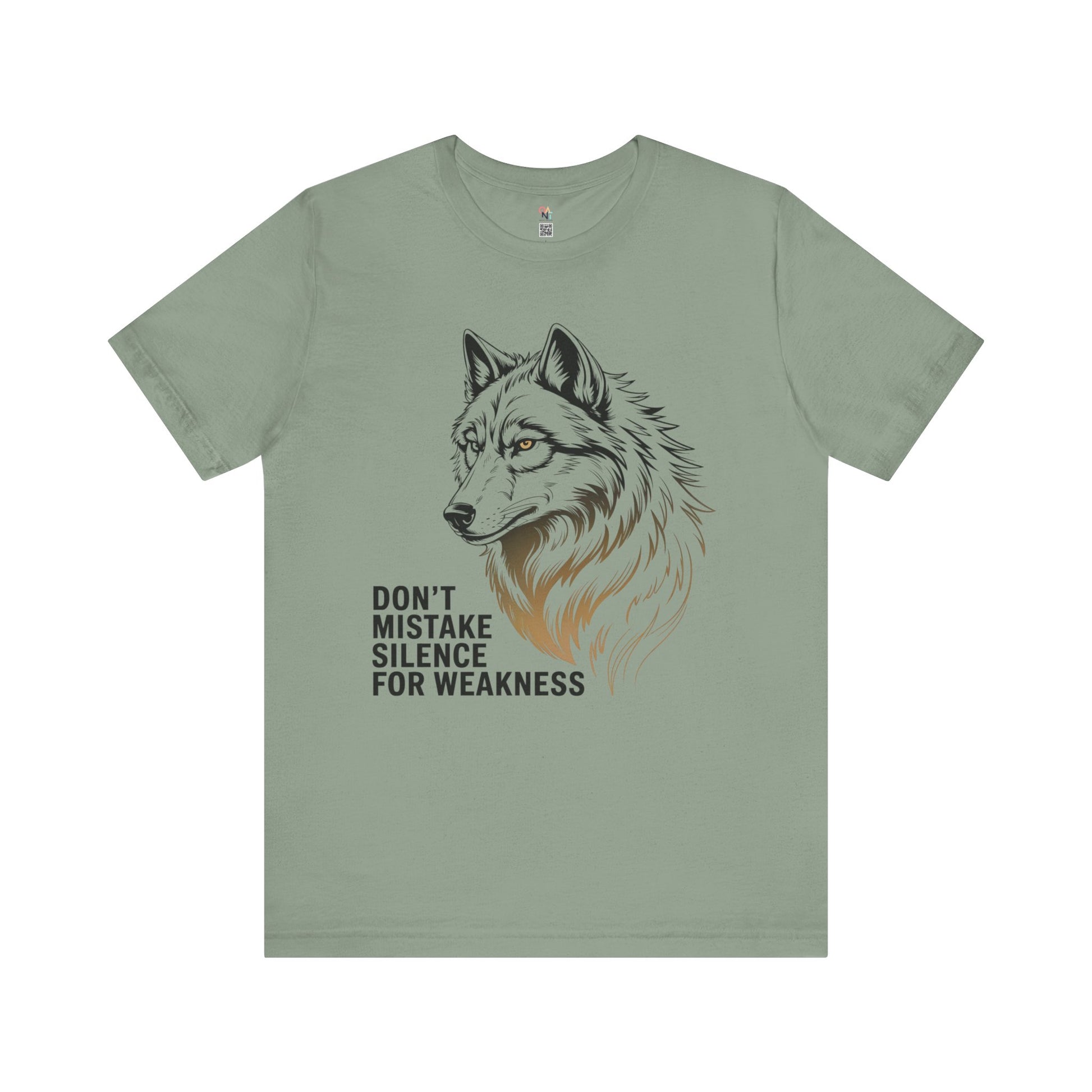 Bold wolf graphic tee with the quote 'Don't Mistake Silence for Weakness'. Perfect for nature lovers, animal enthusiasts, and anyone who finds power in calm. Makes a great motivational gift for men or women. Ideal for wildlife enthusiasts and outdoor lovers. Relevant for gifts, outdoor events, nature holidays, and wildlife celebrations.