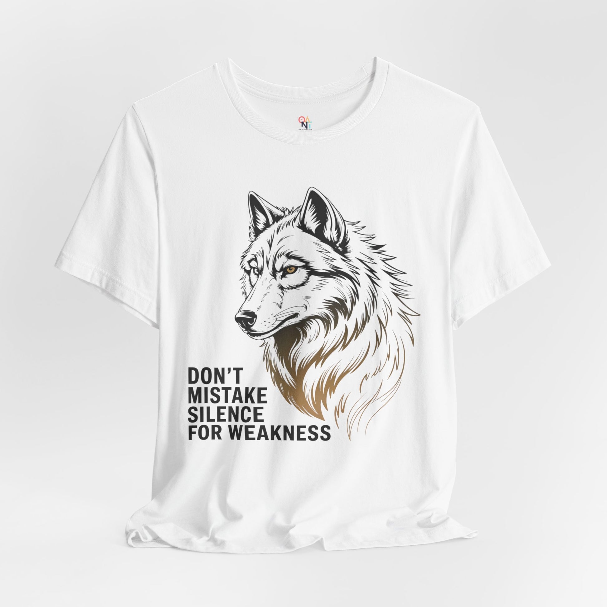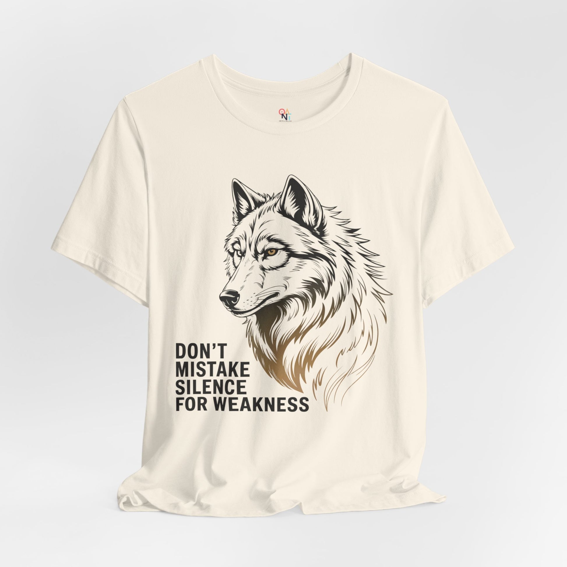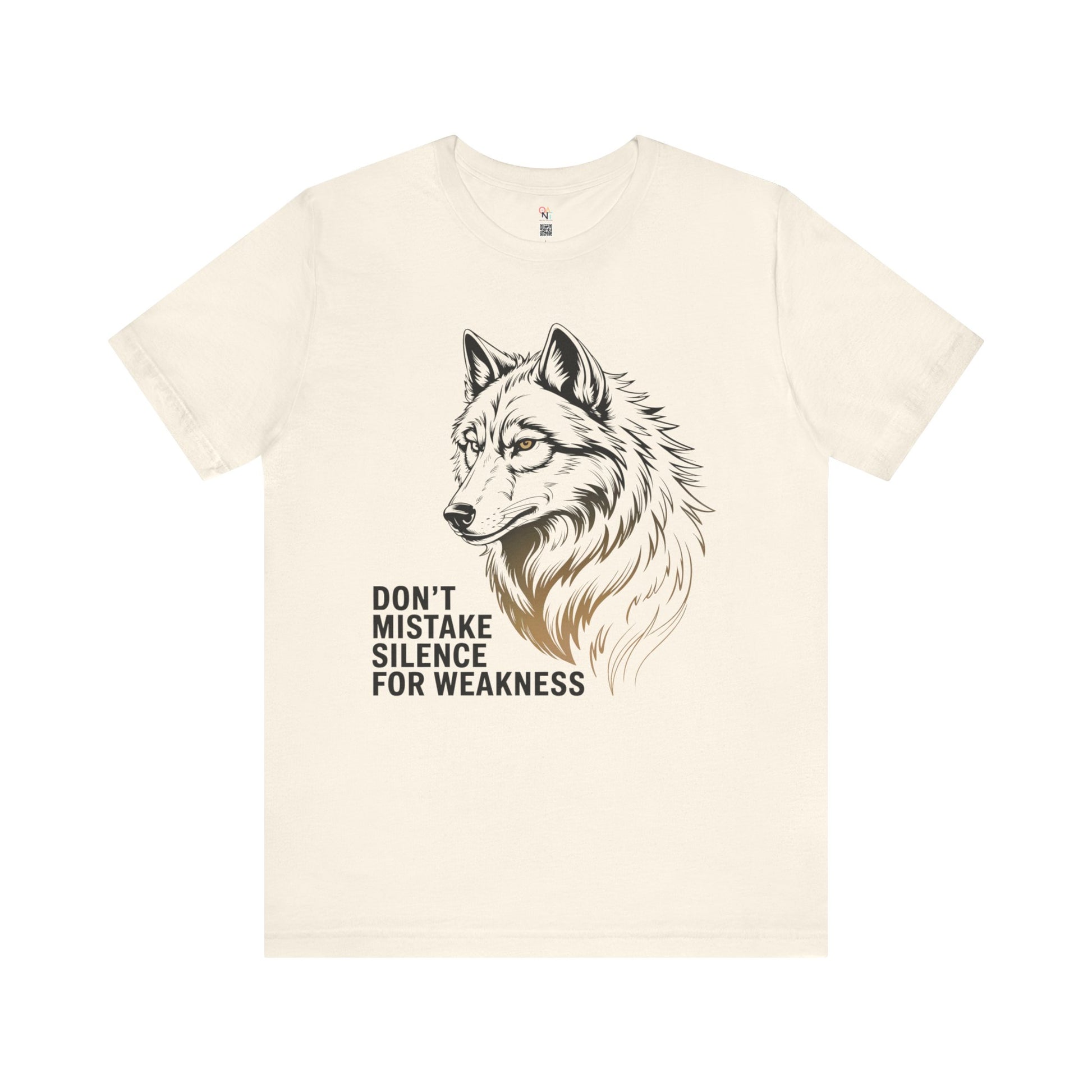 Bold wolf graphic tee with the quote 'Don't Mistake Silence for Weakness'. Perfect for nature lovers, animal enthusiasts, and anyone who finds power in calm. Makes a great motivational gift for men or women. Ideal for wildlife enthusiasts and outdoor lovers. Relevant for gifts, outdoor events, nature holidays, and wildlife celebrations.