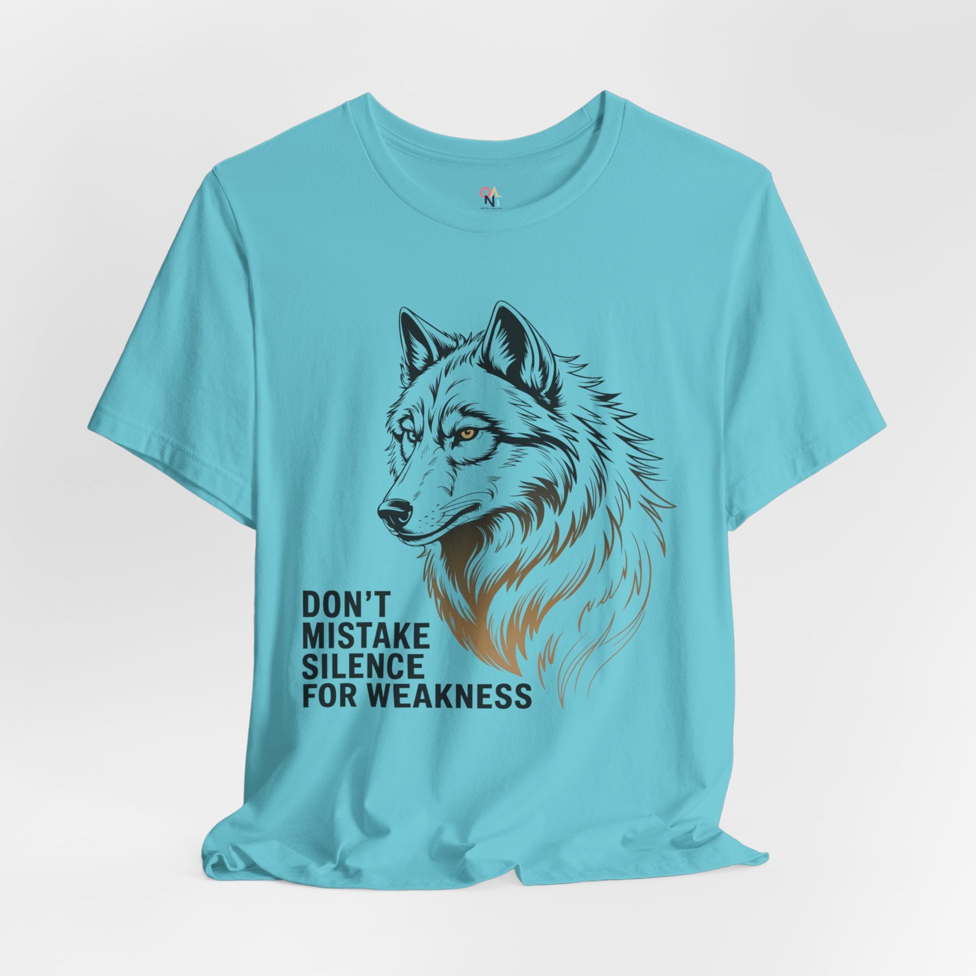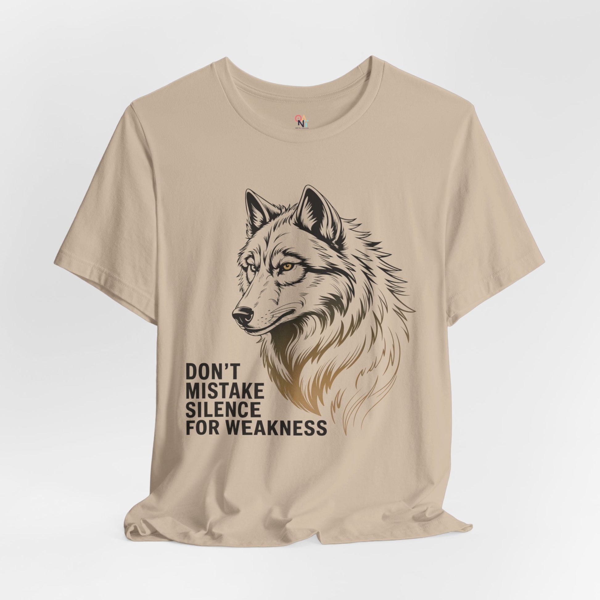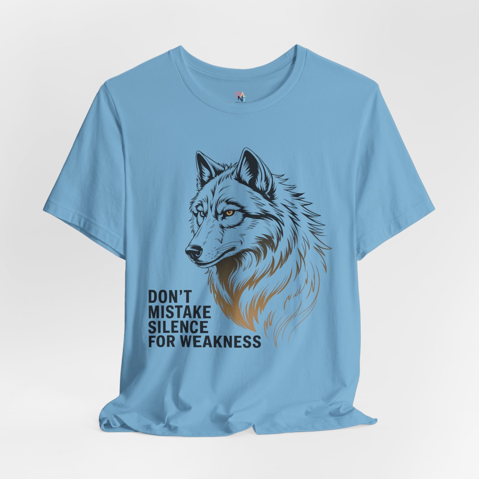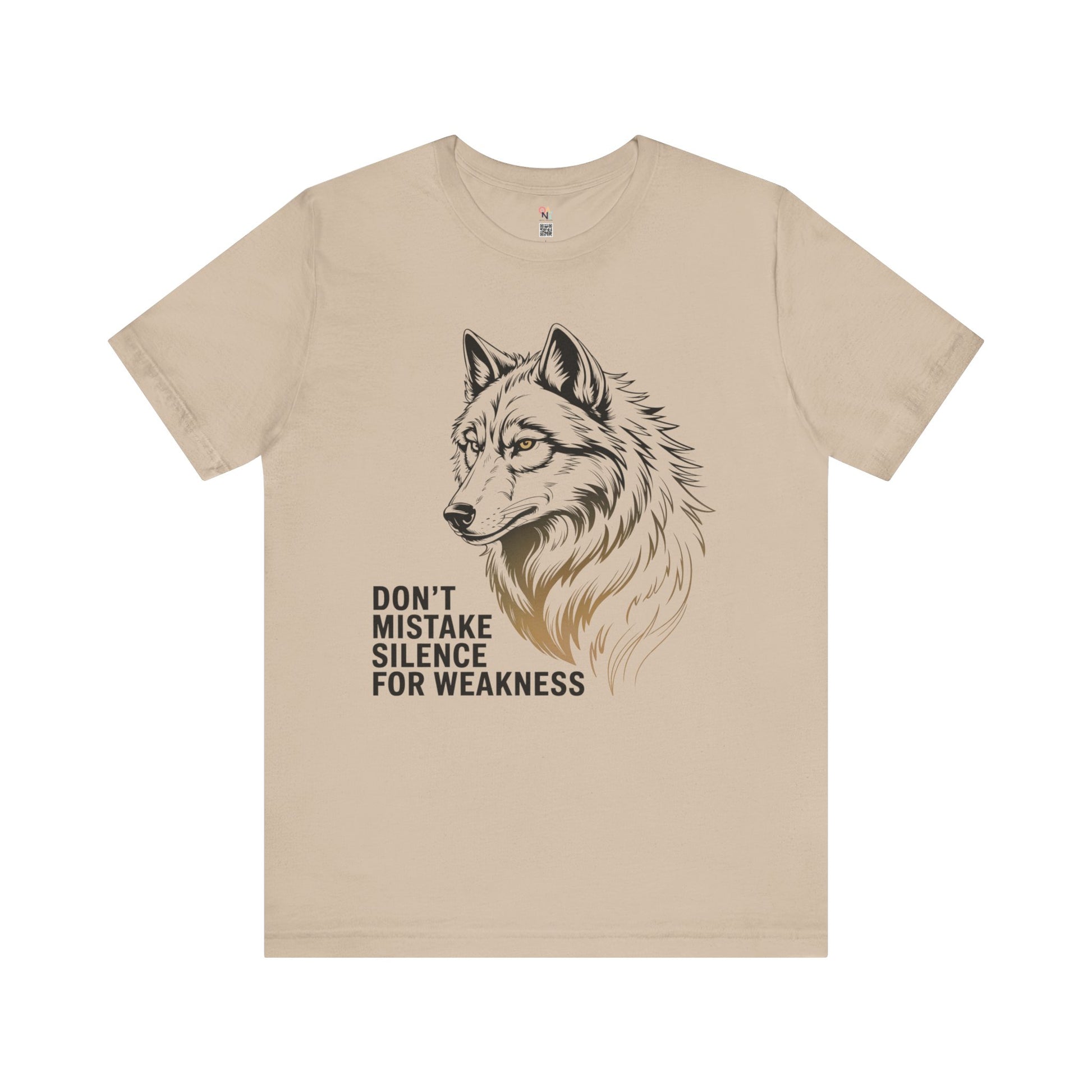Bold wolf graphic tee with the quote 'Don't Mistake Silence for Weakness'. Perfect for nature lovers, animal enthusiasts, and anyone who finds power in calm. Makes a great motivational gift for men or women. Ideal for wildlife enthusiasts and outdoor lovers. Relevant for gifts, outdoor events, nature holidays, and wildlife celebrations.